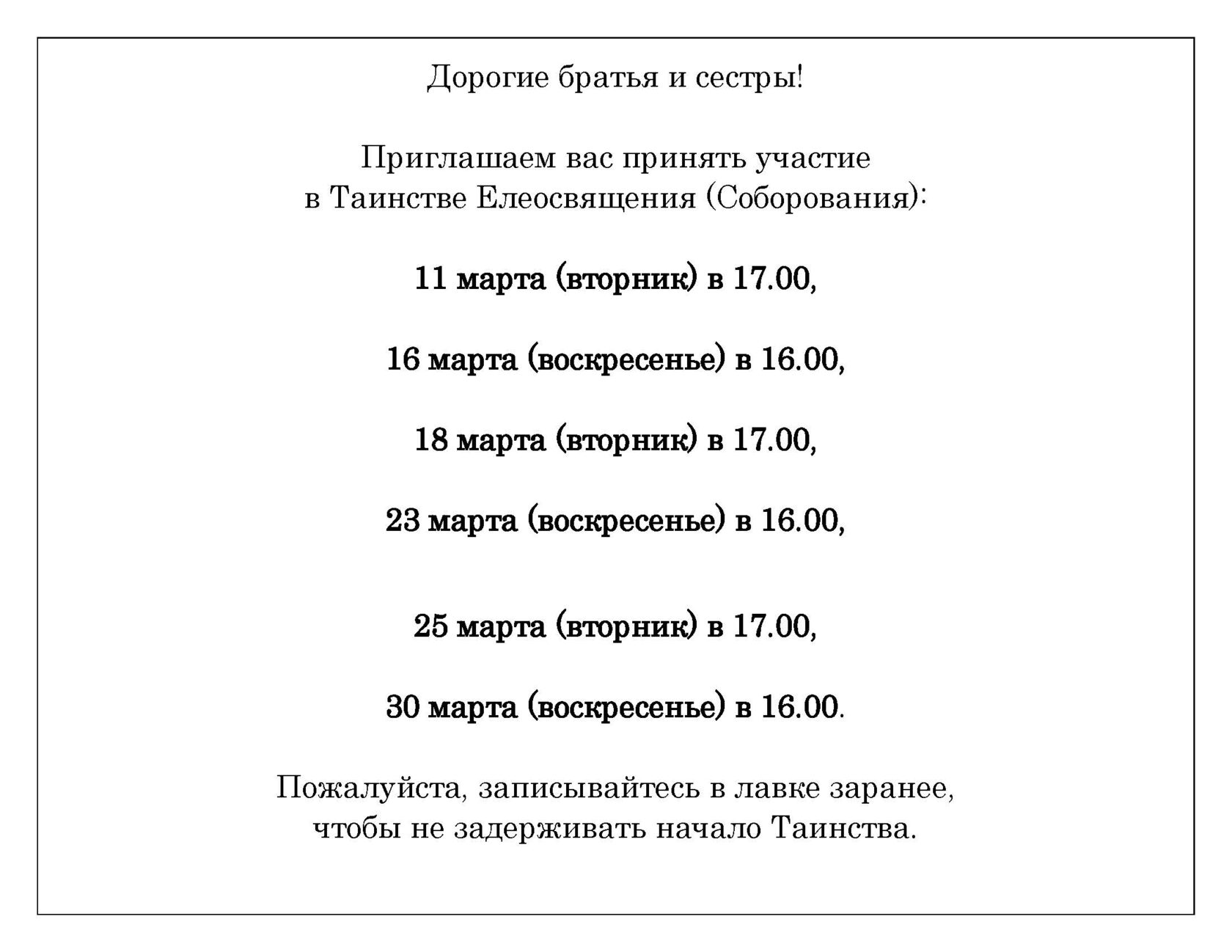 Приглашаем вас принять участие в Таинстве Елеосвящения (Соборования):